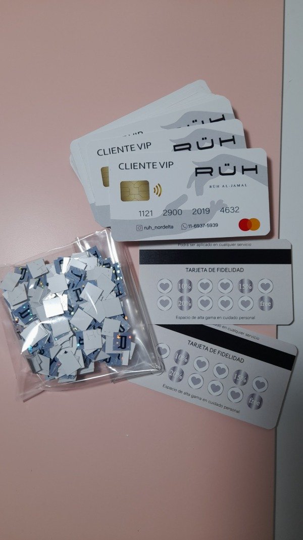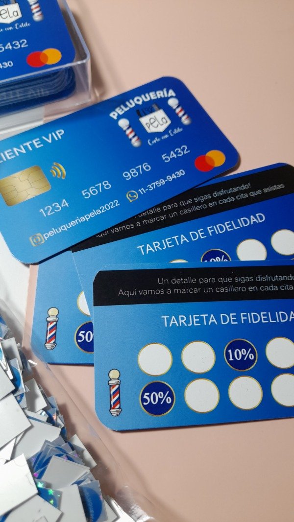 100 tarjetas vip personalizadas con logo, colores, contacto y descuentos.