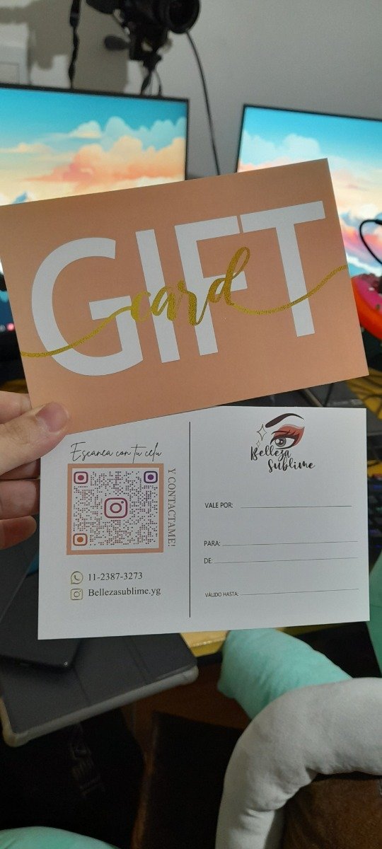 20 tarjetones gift card en papel opalina 190gs, tamaño 10×15